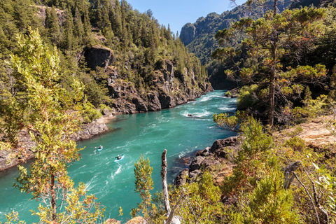 Der Futaleufú liegt im Herzen Patagoniens. Umringt vom faszinierenden Andengebirge, bietet er Wuchtwasser der Schwierigkeit III-IV vom Feinsten.