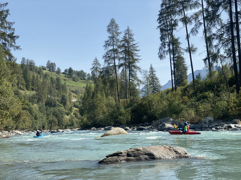 Verschiedene Abschnitte von Zernez bis Scuol bieten uns wunderschönes und faires Wildwasser der Schwierigkeitsgrade WW II bis V.